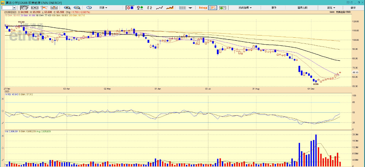 他指出,若10月中旬以後油價升勢加快,亦較為有利燃氣股。除新奧之外,中國燃氣(00384)亦可以留意,年底前有望挑戰8.8至9元。