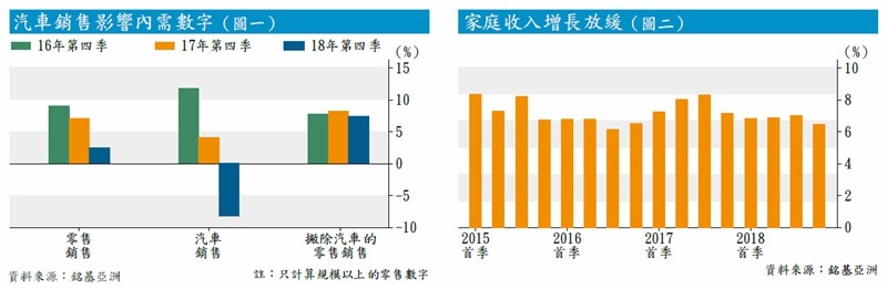 反之,羅福萬就較有信心,他指零售銷售轉差,最大的因素是汽車銷售下跌。上季規模以上名義零售總額按年增長只有2.6%,比2017年急跌4.7個百分點,當中受汽車銷售大跌8.3%所拖累,若撇除汽車銷售,整體的零售銷售是升7.7%,與2017年8.6%的增長比,不是想像中那麼差。
