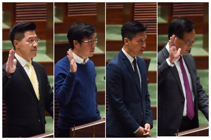 (左起)范國威、區諾軒、鄭泳舜和謝偉銓,正式宣誓就任立法會議員。