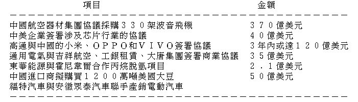 中美創2535億美元簽約「奇蹟」 表列部分項目