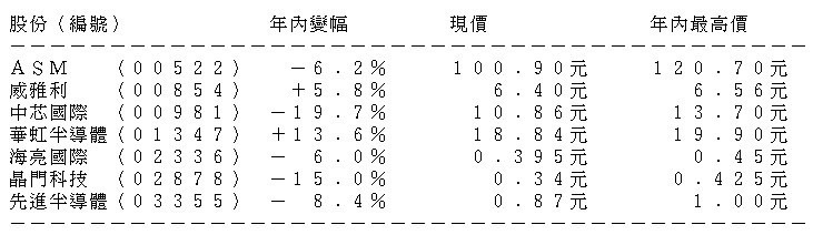 此外,捲入中美貿易戰的漩渦當中,中芯或許和其他中國科技股一樣,隨時成為美國的「標靶」。公司銷往美國市場所獲營收佔總營收四成,內地及香港市場則佔47%。由於美國市場對公司來說有極大重要性,投資者投資中芯時,亦需要防政策風險會大大影響公司盈利能力。