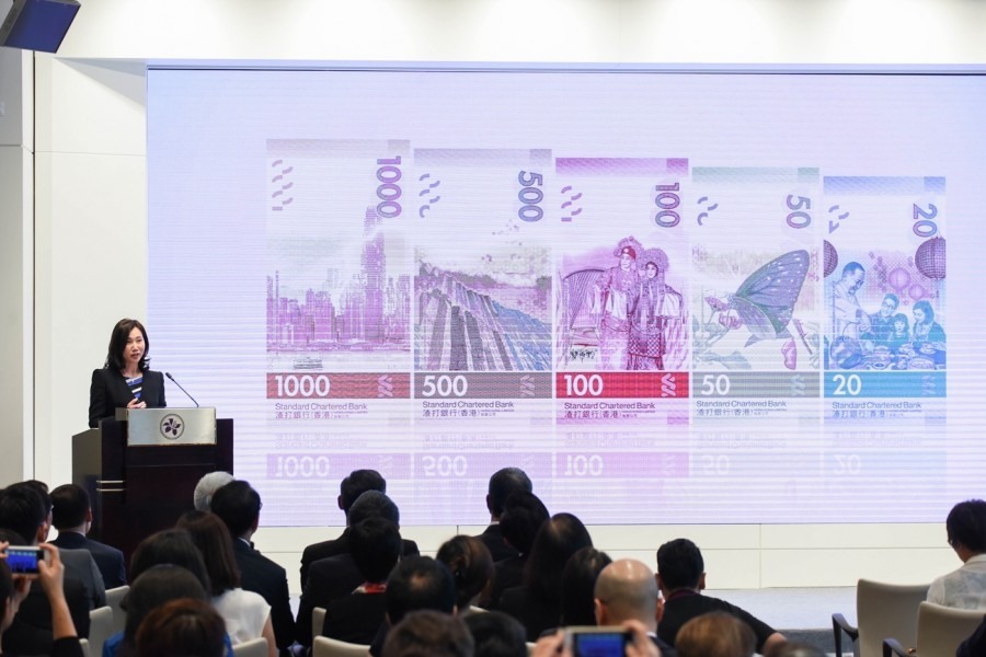 金管局總裁陳德霖表示:「和其他地方一樣,我們每隔一段時期就會設計和推出新系列鈔票,目的是令流通鈔票能夠採納最新的印鈔科技,令偽鈔犯罪集團難以模仿或複製。」他續說:「新鈔票系列不但加入了尖端的防偽特徵,而且統一了三間發鈔銀行五個面額的設計主題,展現香港的本地文化,並以直幅的形式展示於鈔票背面,與以往的鈔票設計截然不同。」