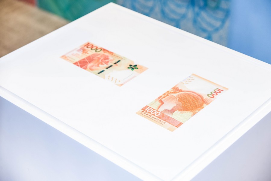 2018香港新鈔票系列統一了三間發鈔銀行五個面額的設計主題,展現香港的本地文化,並以直幅的形式展示於鈔票背面,與以往的鈔票設計截然不同 (Kenji攝)