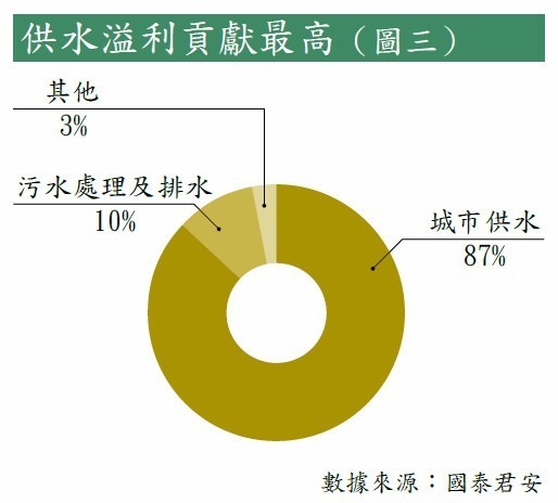 水務行業增長迅猛,中國水務過去一年業績自然對辦。在供水及污水處理收入分別按年增加25%及47%的情況下,去年錄盈利11.4億元,按年增加34%。國泰君安更預計集團未來3年間的的供水及污水處理收入,將分別以14%及20%的複合年增長率擴張,集團的自來水供應及污水處理日均處理量,中長期而言分別有望提升至108.9億立方米及11.3億立方米。管理層亦看好業務前景,相信盈利增長率可和對上數年相若。