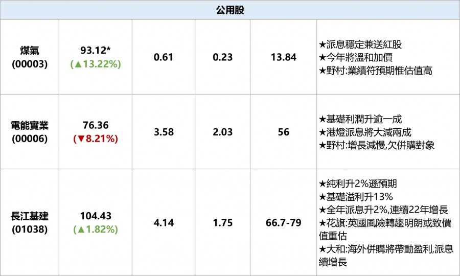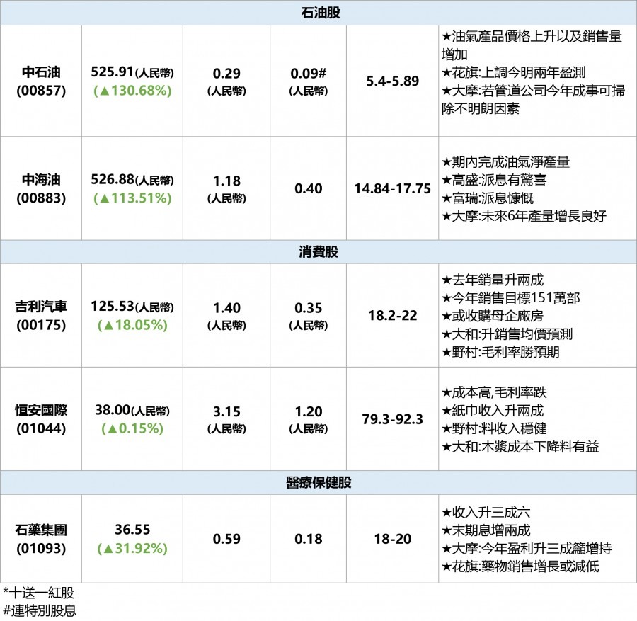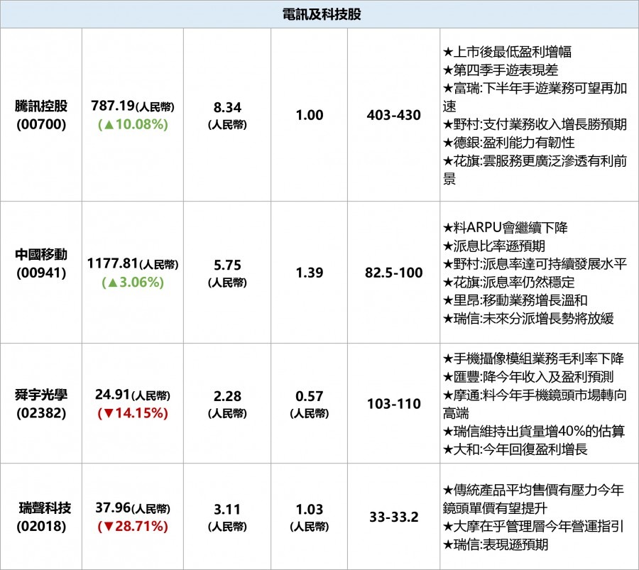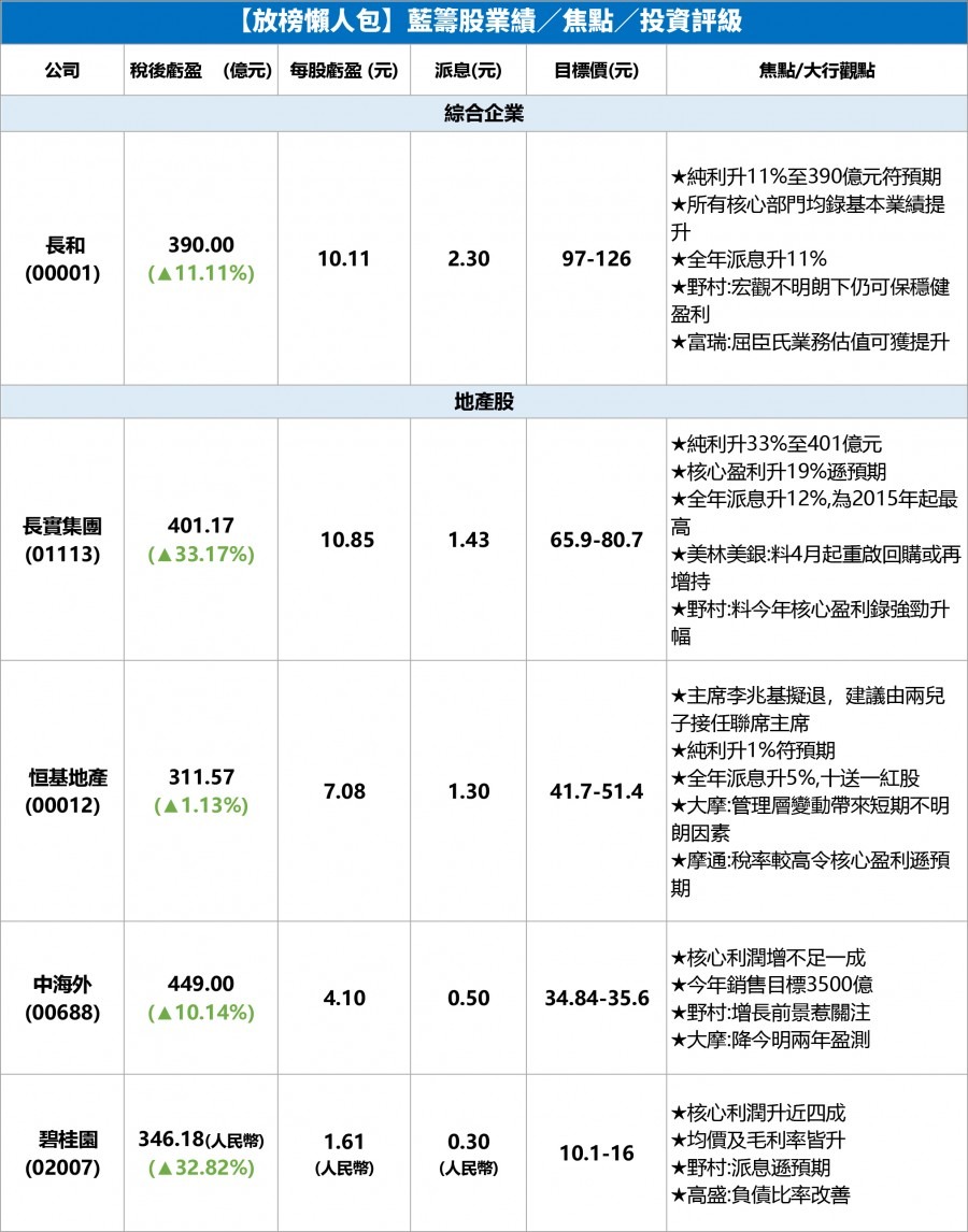 由2月19日至3月1日公布的藍籌公司業績焦點及投資評級一覽表,請參閱3月1日