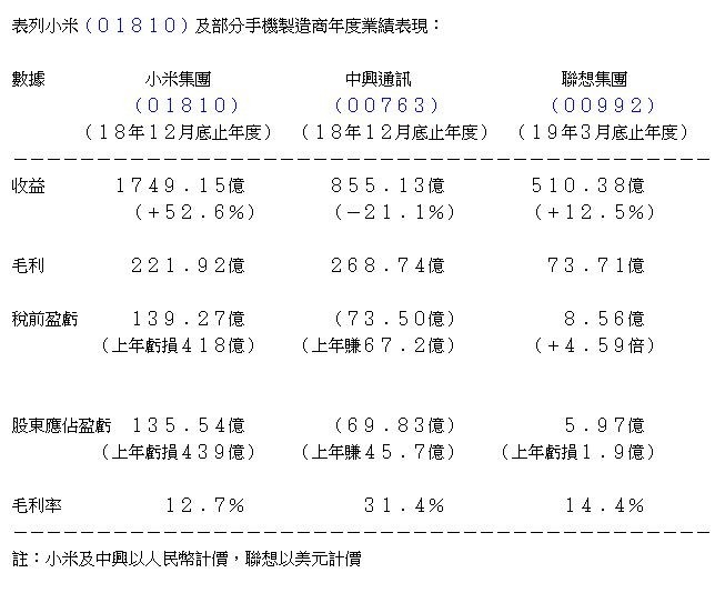 雖然小米毛利率低的問題一直為大行所擔心,德銀曾發表研究報告指,雖然小米今年首季業績勝預期,但手機毛利較弱,相信互聯網業務可以抵銷,報告指小米在目前手機市場逆境中仍能維持增長,其表現令市場滿意,維持「買入」評級,目標價升至17.1元,並指小米股價若跌穿10元則「相當吸引」。匯證則發表研究報告指,早前華為被美國政府封殺,在手機股不穩定的期間,小米及中興(00763)或可受惠。