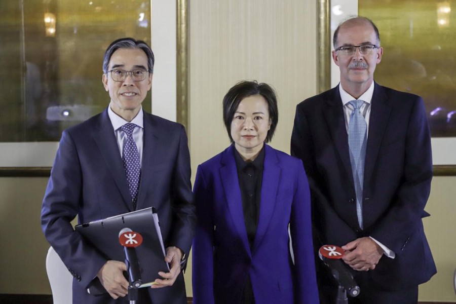 (左起)港鐵車務總監劉天成、 港鐵公司事務總監蘇家碧及港鐵工程總監包立聲 。