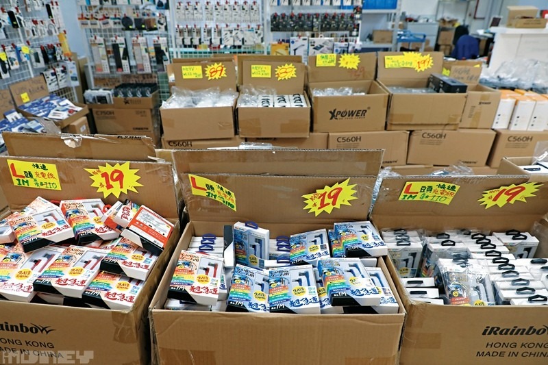 位於葵興的辦公室,佔地過萬平方呎,集貨倉、辦公室、批發散貨場於一身。圖為部分批發特價產品。
