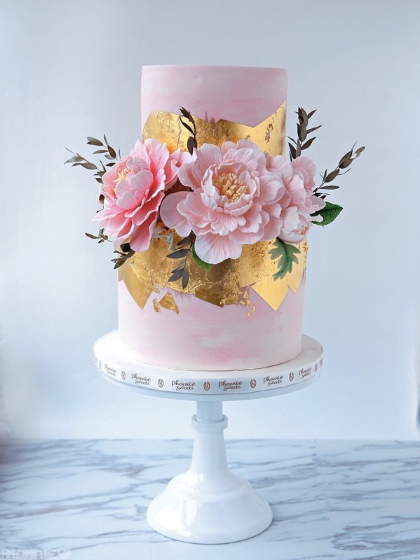 以糖皮製作的花朵十分精緻,是蛋糕的一大賣點。