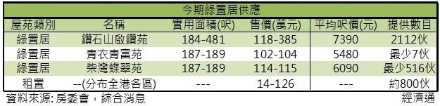 自於其餘兩個綠置居餘貨盤就清一色只有不足200呎的蚊型單位供應,其中超過500伙為柴灣蝶翠苑,想住港島區的小家庭準申請者不妨留意。